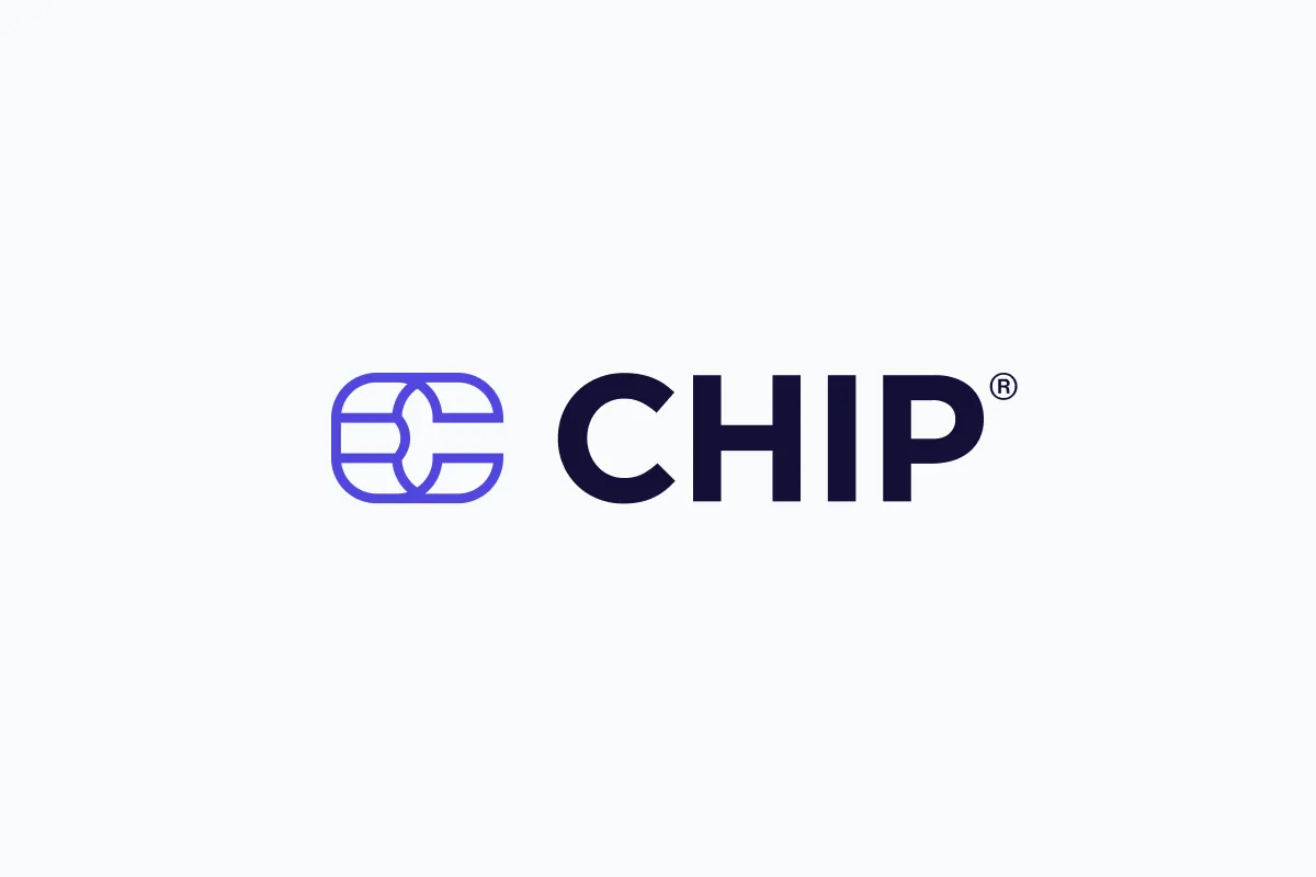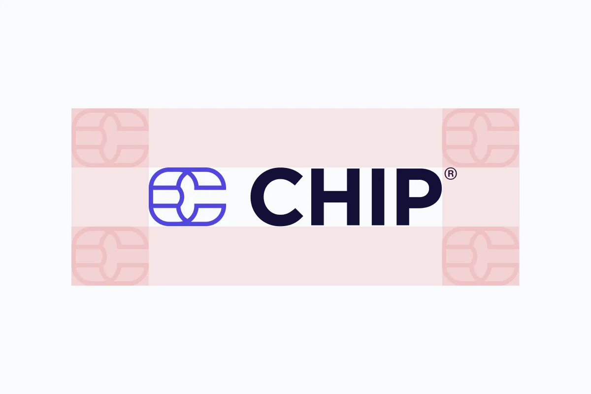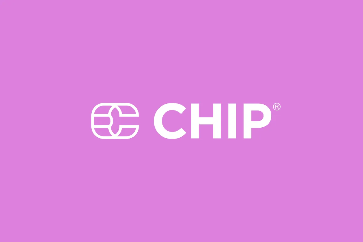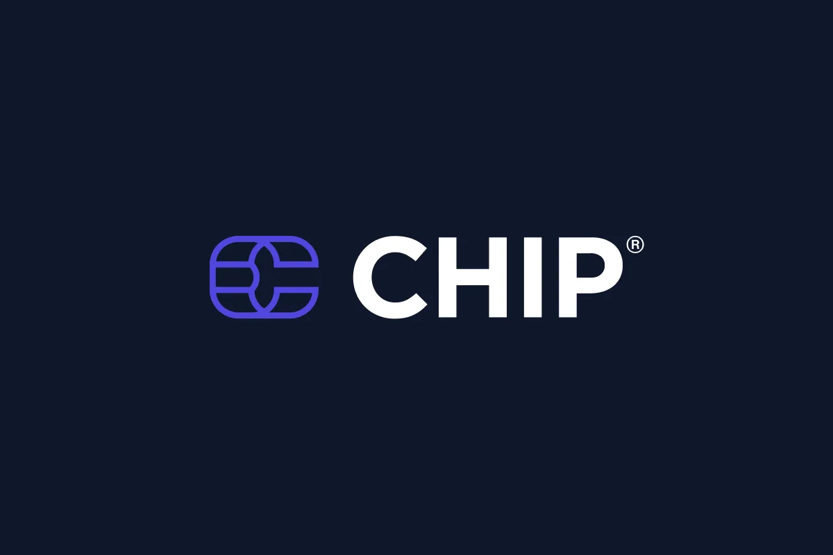 On darker background, use our full-colour primary logo with white (#FFFFFF) "CHIP" wordmark.