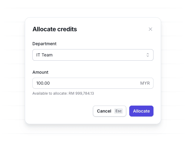 Empower your team leads with the autonomy to manage their own budgets through customized access and control settings.