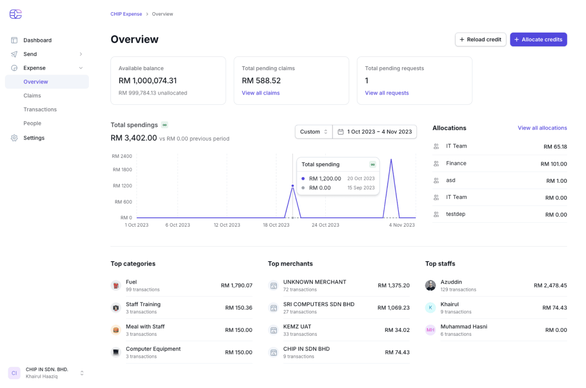 CHIP Expense ensures that staff spending stays within limits by enabling pre-defined budget allocations.