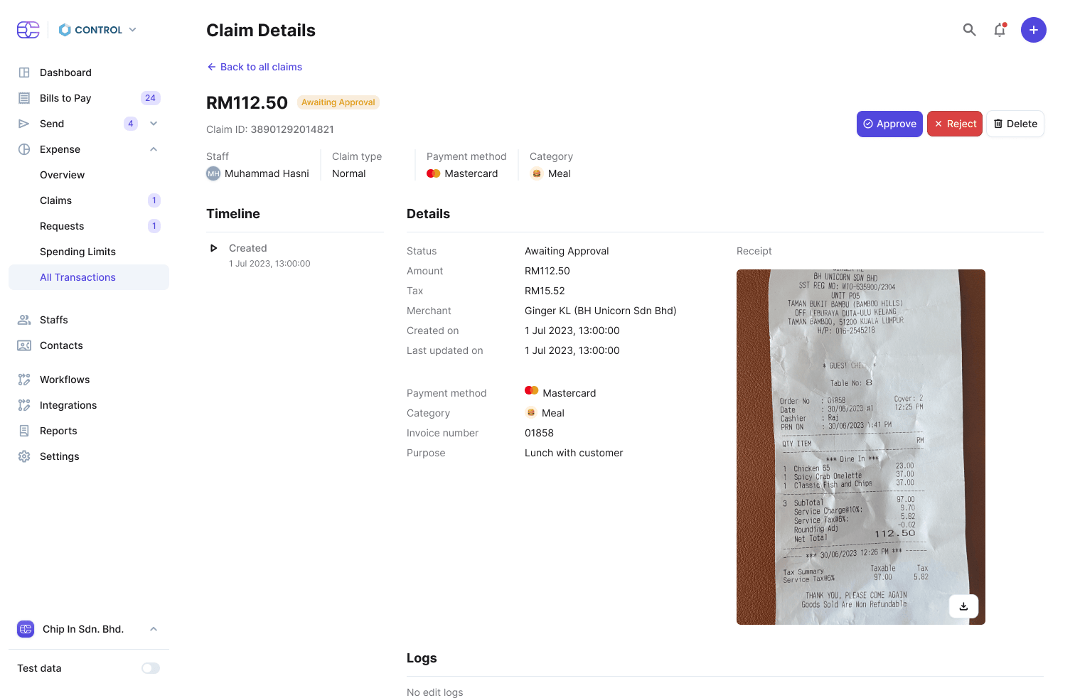 Setting up spending limits in CHIP Expense goes beyond mere budgeting. They act as a proactive financial control mechanism, empowering you to manage your team's spending effectively.